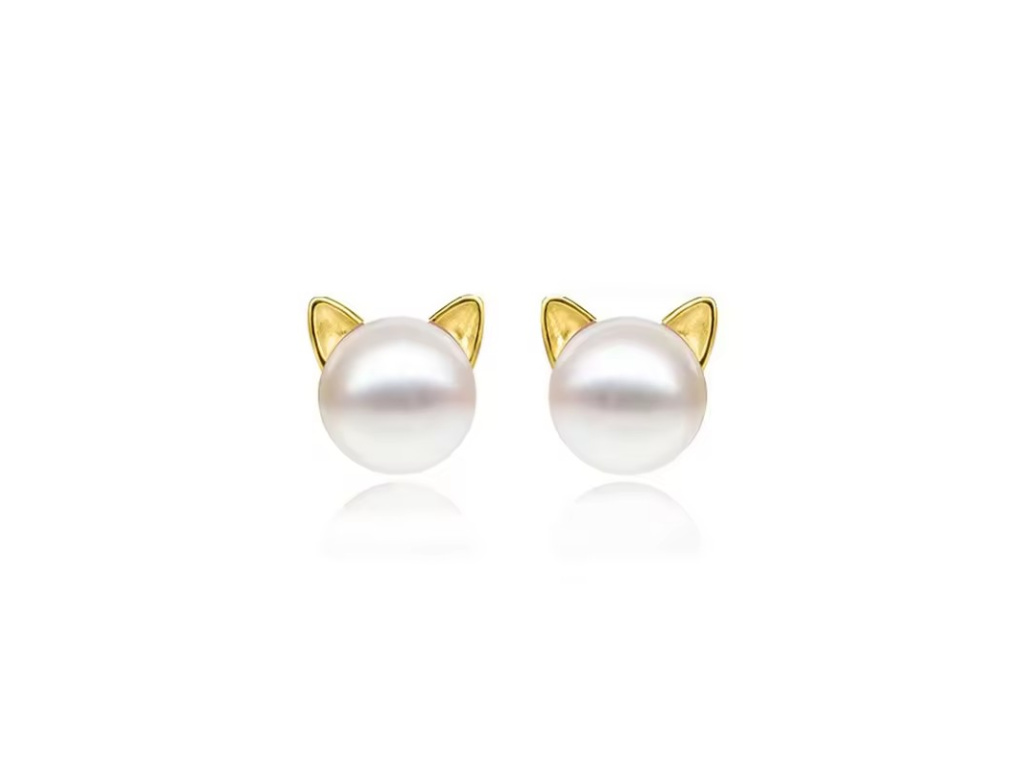 STRIEBORNÉ NÁUŠNICE S PERLOU MAČKA