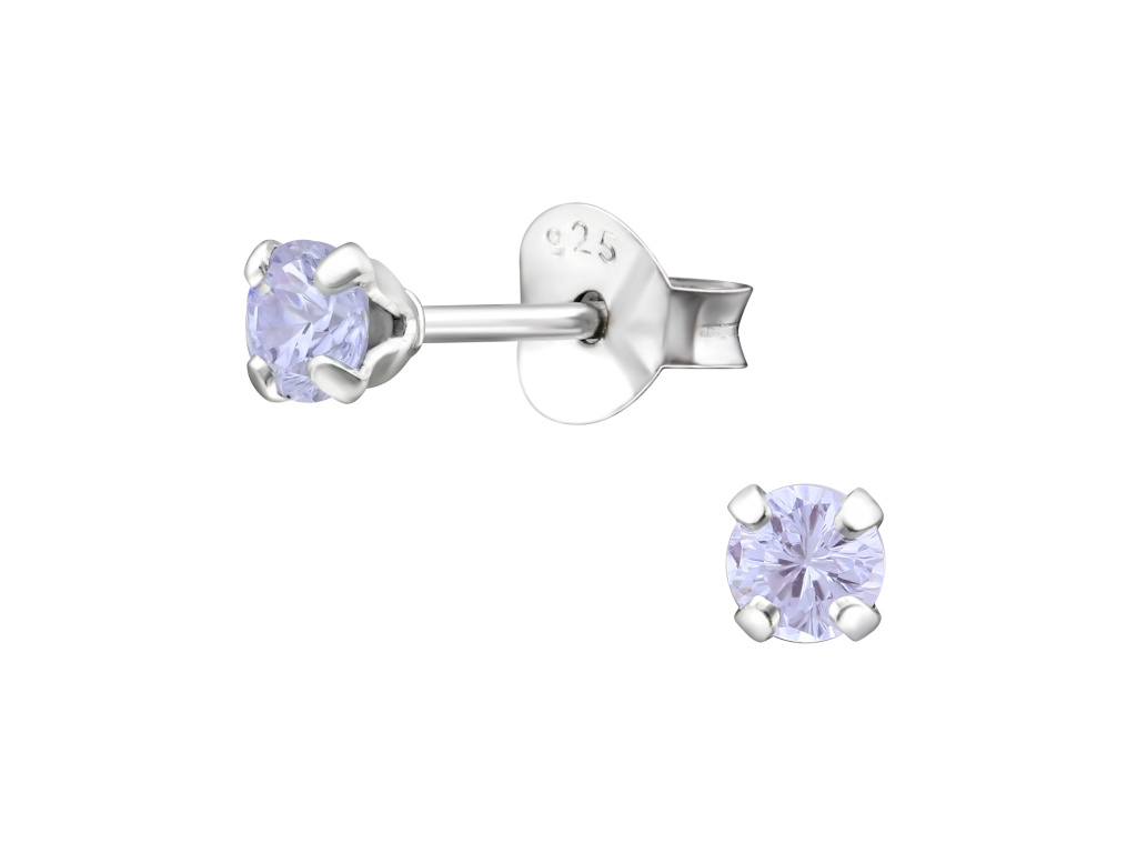 STRIEBORNÉ 3mm NÁUŠNICE LILA