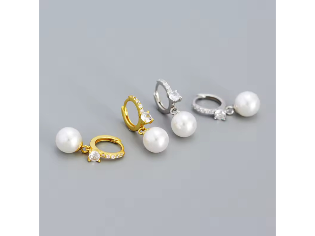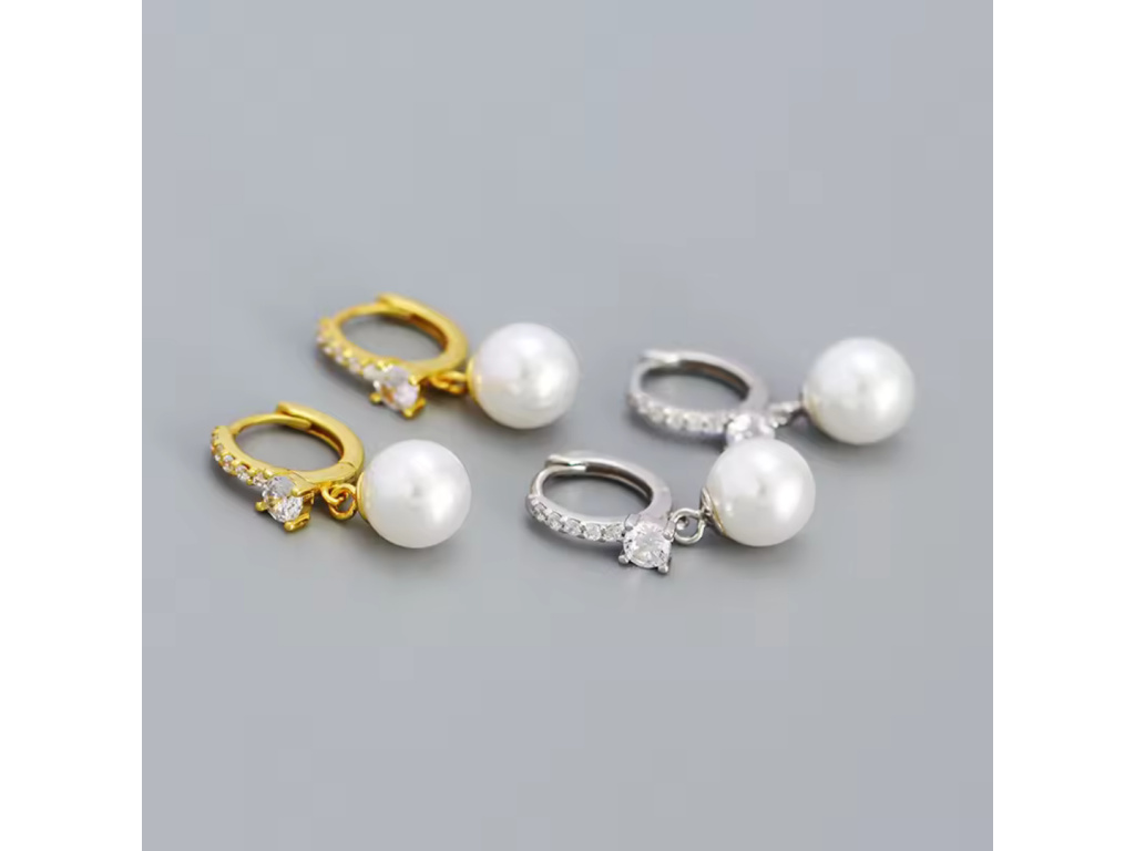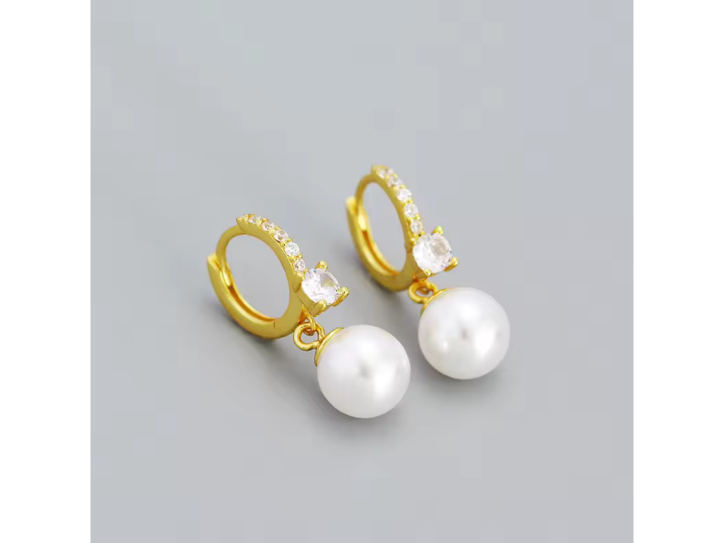 STRIEBORNÉ NÁUŠNICE S PERLOU GOLD