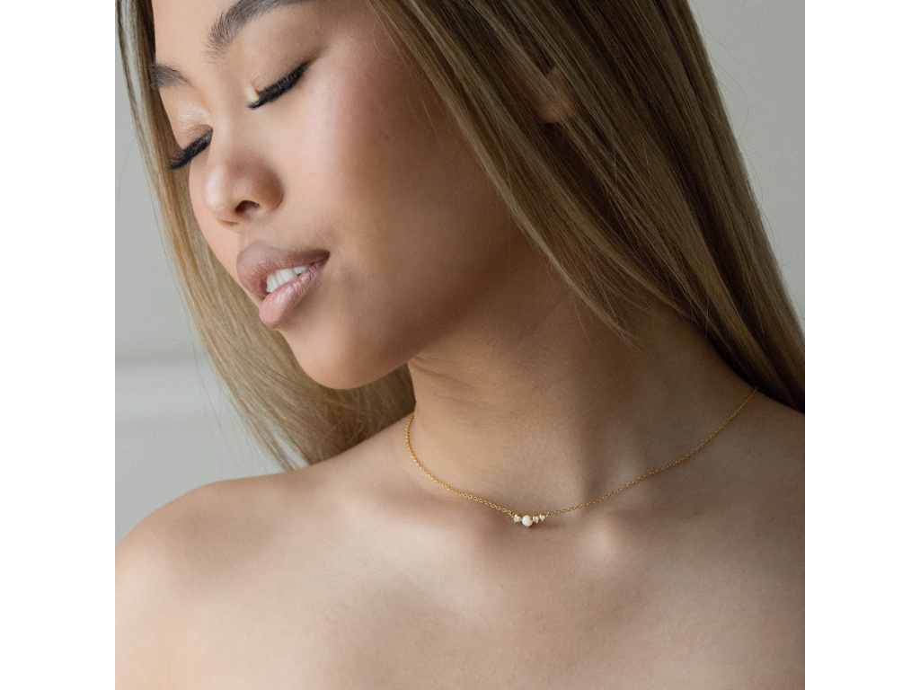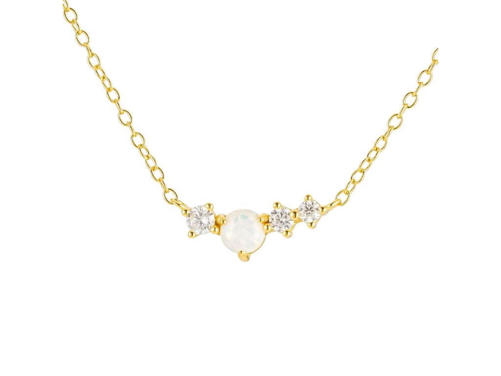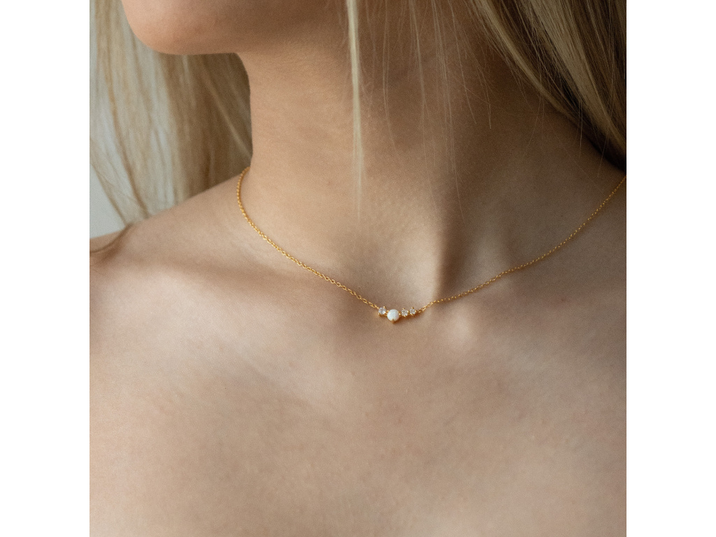 Osadené číre zirkóny a jeden biely opál s priemerom 4 mm.