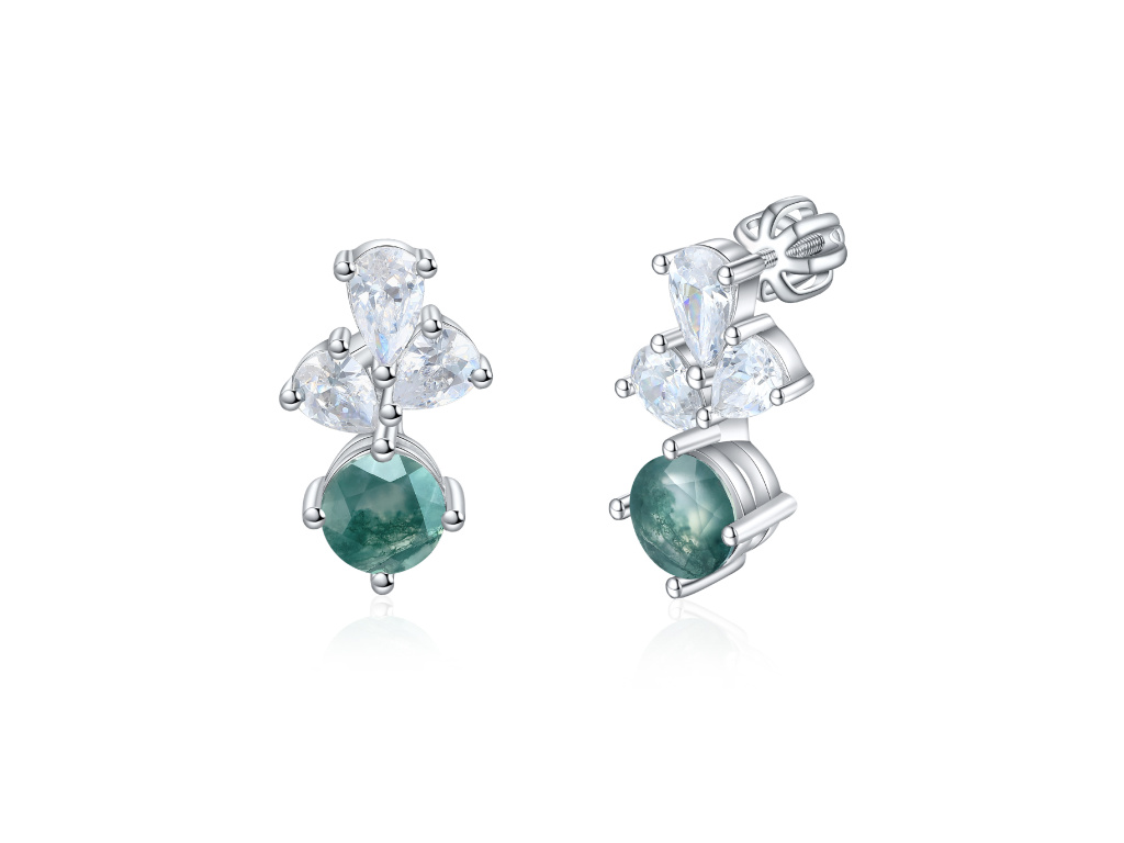 8920 Strieborné náušnice MECHOVÝ ACHÁT Ag 925; ≤2,4 g.