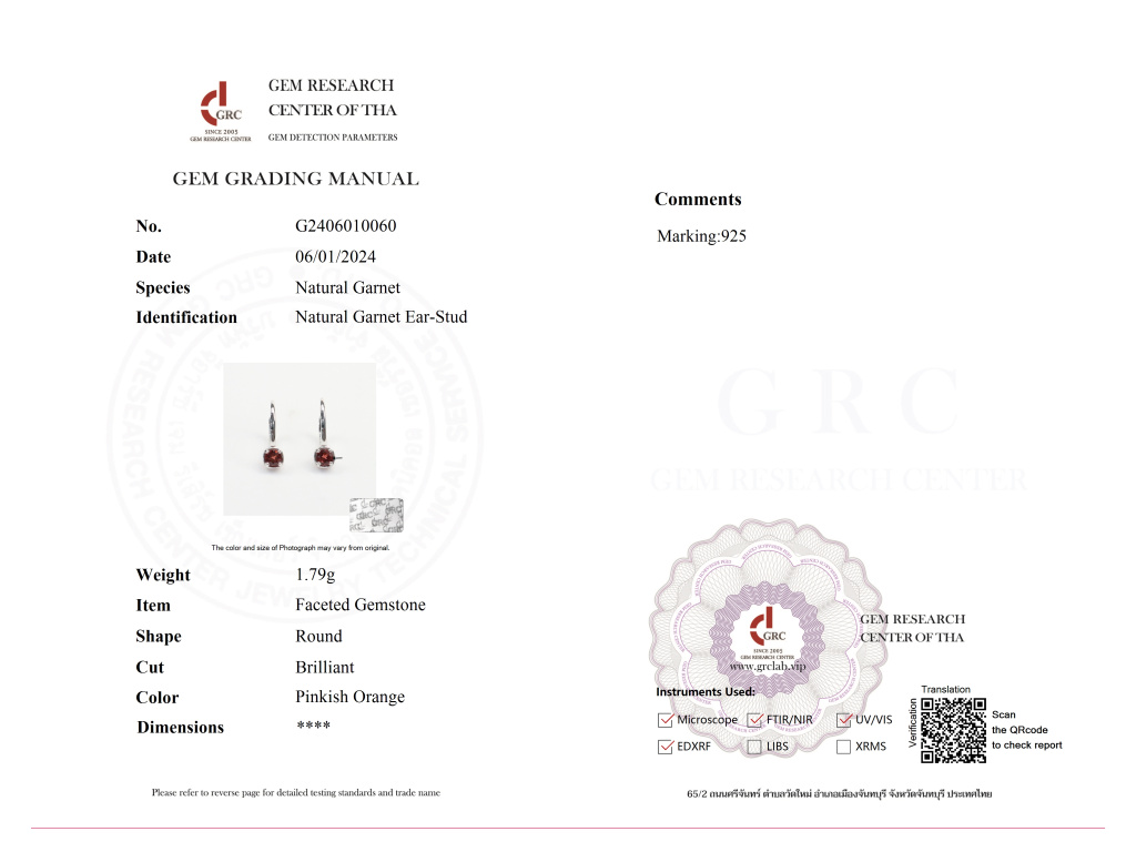 8934 Strieborné náušnice PRÍRODNÝ GRANÁT Ag 925; ≤1,7 g.