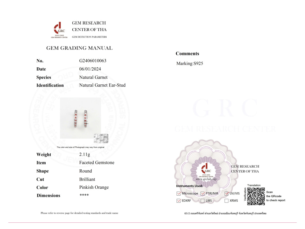 Náušnice sú vyrobené zo striebra 925/1000 a sú označené puncovou značkou rýdzosti.
