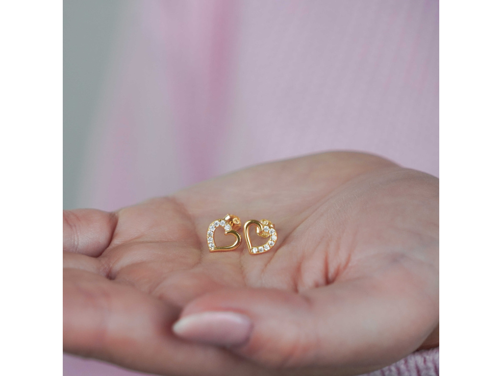 9051 Strieborné náušnice SRDCE GOLD Ag 925; ≤1,0 g.