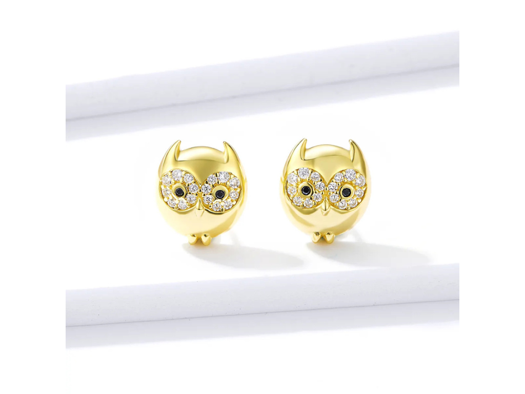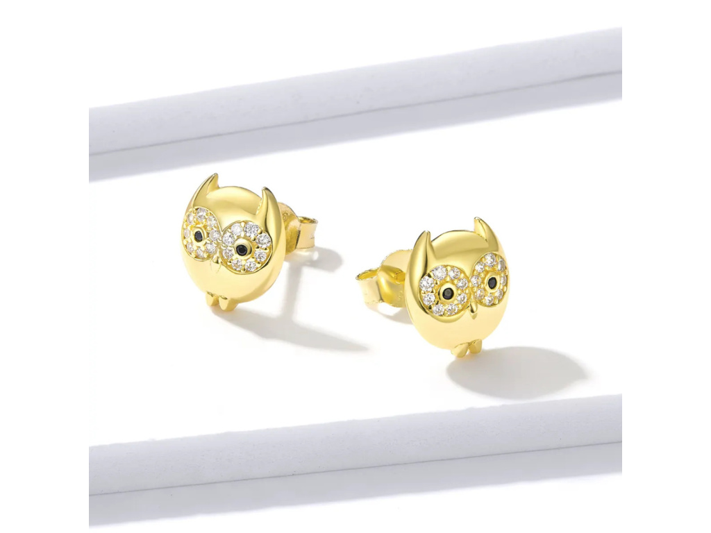 9182 Strieborné náušnice SOVA GOLD Ag 925; ≤2,2 g.