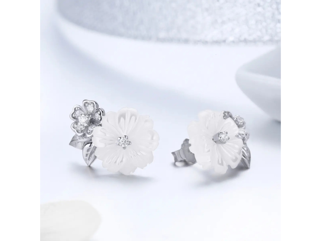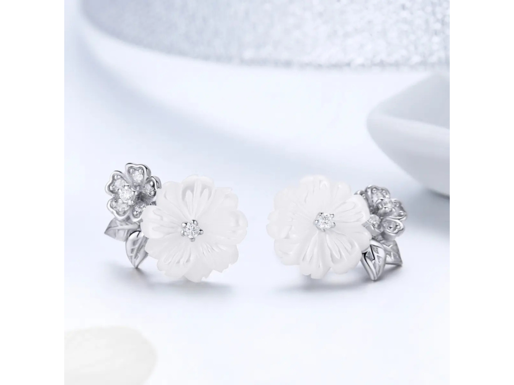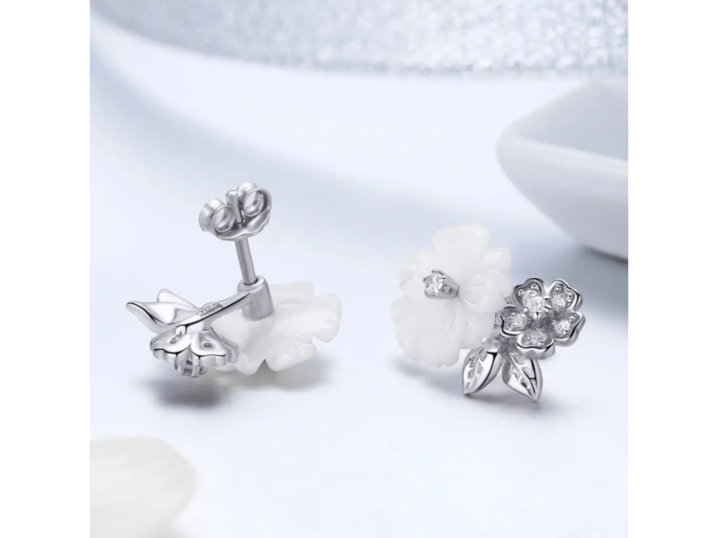 STRIEBORNÉ NÁUŠNICE BIELY KVET