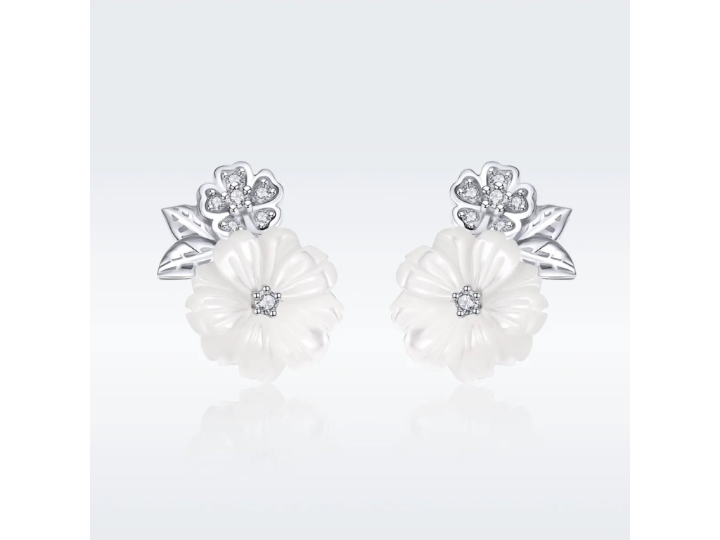 9183 Strieborné náušnice BIELY KVET Ag 925; ≤2,0 g.