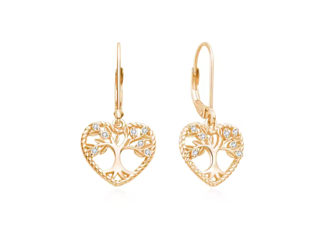 STRIEBORNÉ NÁUŠNICE STROM ŽIVOTA V SRDCI GOLD