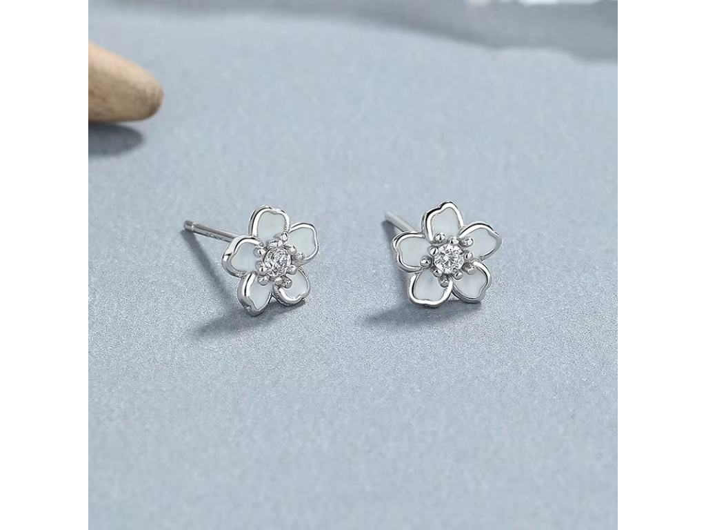 9378 Strieborné náušnice BIELY KVET Ag 925; ≤0,8 g.