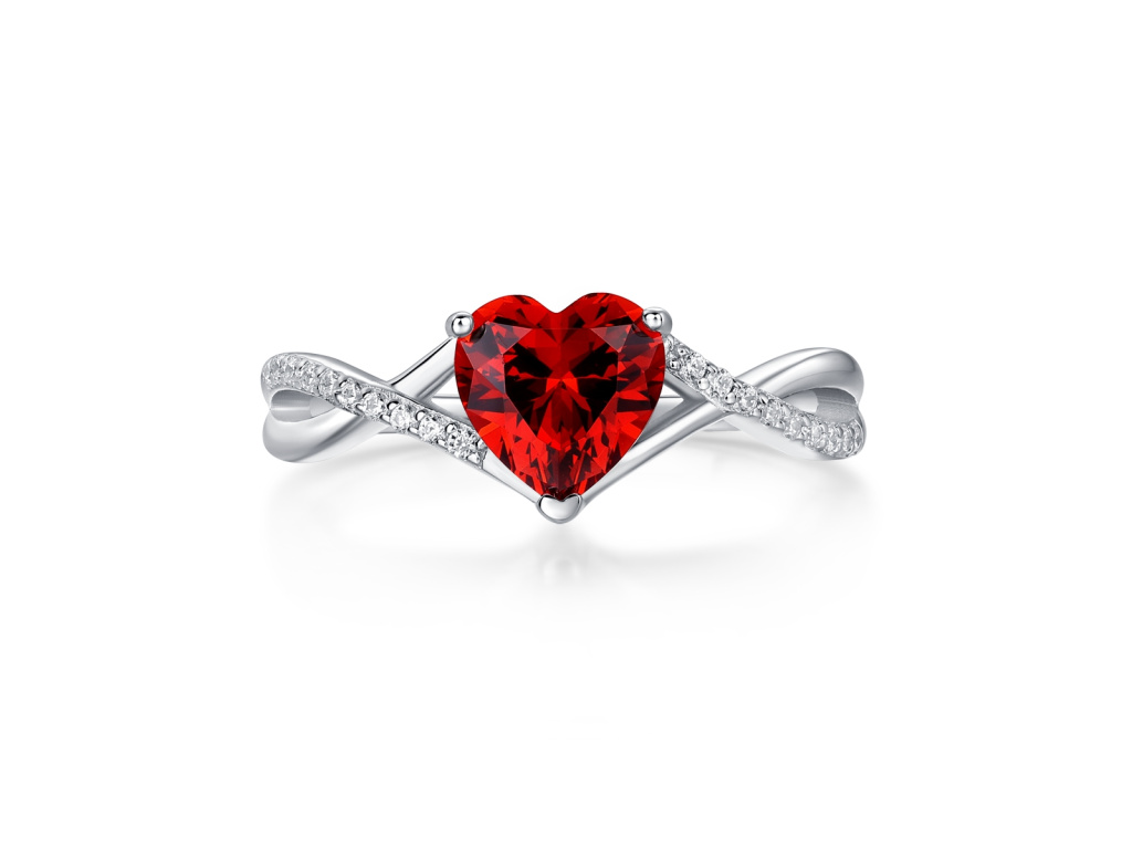 9521 Strieborný prsteň SRDCE RED Ag 925; ≤2,3 g.