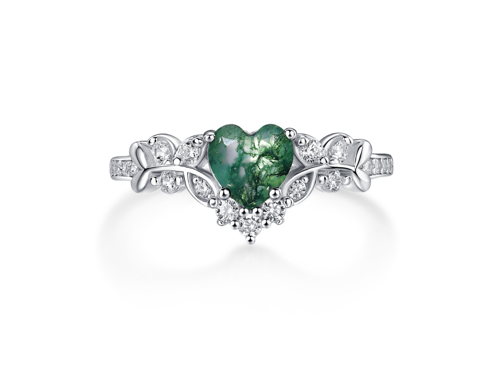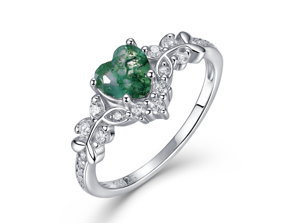 STRIEBORNÝ PRSTEŇ MECHOVÝ ACHÁT