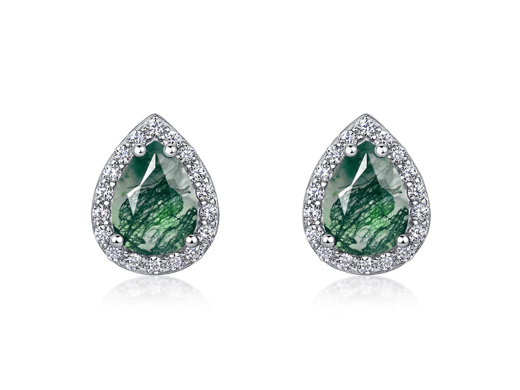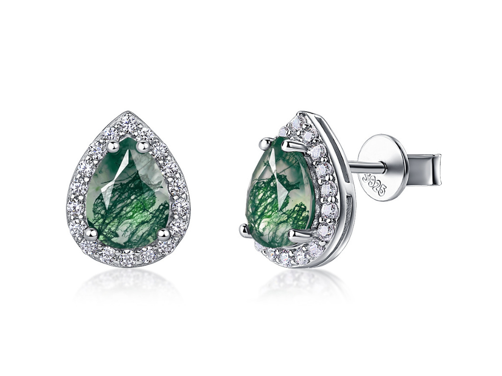 STRIEBORNÉ NÁUŠNICE MECHOVÝ ACHÁT