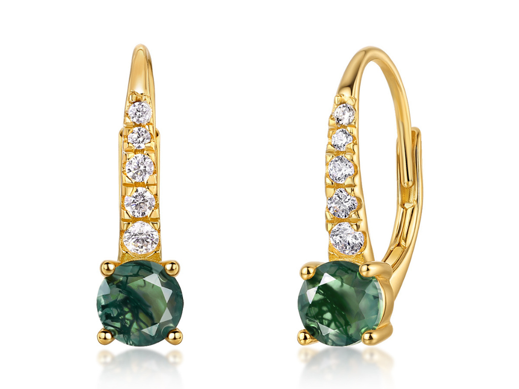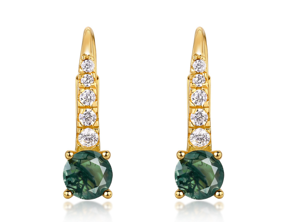 STRIEBORNÉ NÁUŠNICE MECHOVÝ ACHÁT GOLD