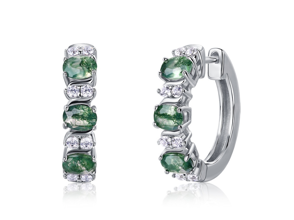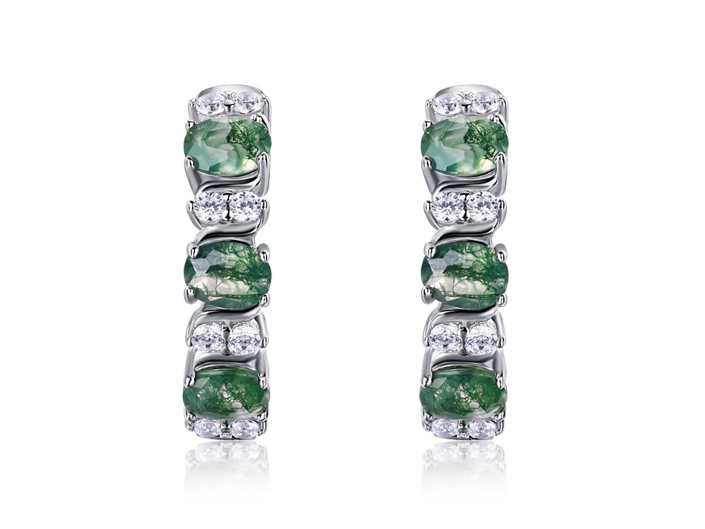 9558 Strieborné náušnice MECHOVÝ ACHÁT Ag 925; ≤3,9 g.