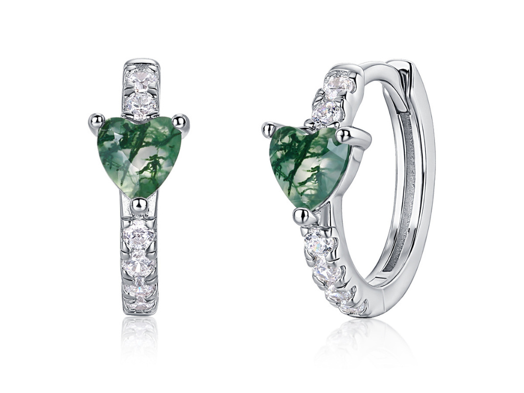 9559 Strieborné náušnice MECHOVÝ ACHÁT Ag 925; ≤1,6 g.