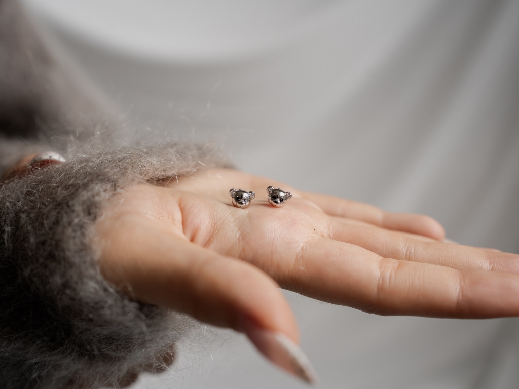 STRIEBORNÉ NÁUŠNICE MEDVEDÍK
