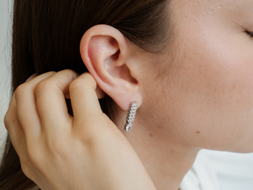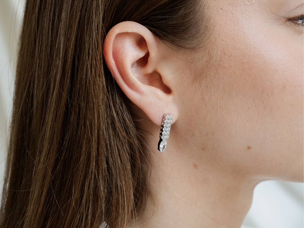 Trblietavé strieborné náušnice vhodné na svadby, plesy a spoločenské akcie.
