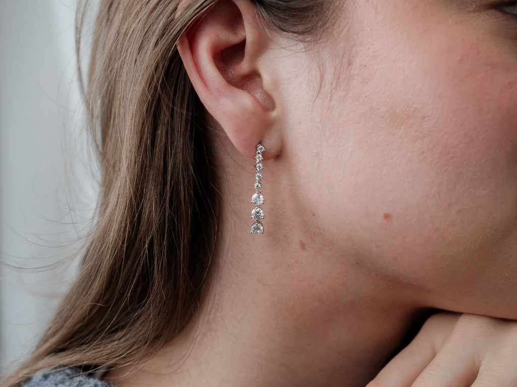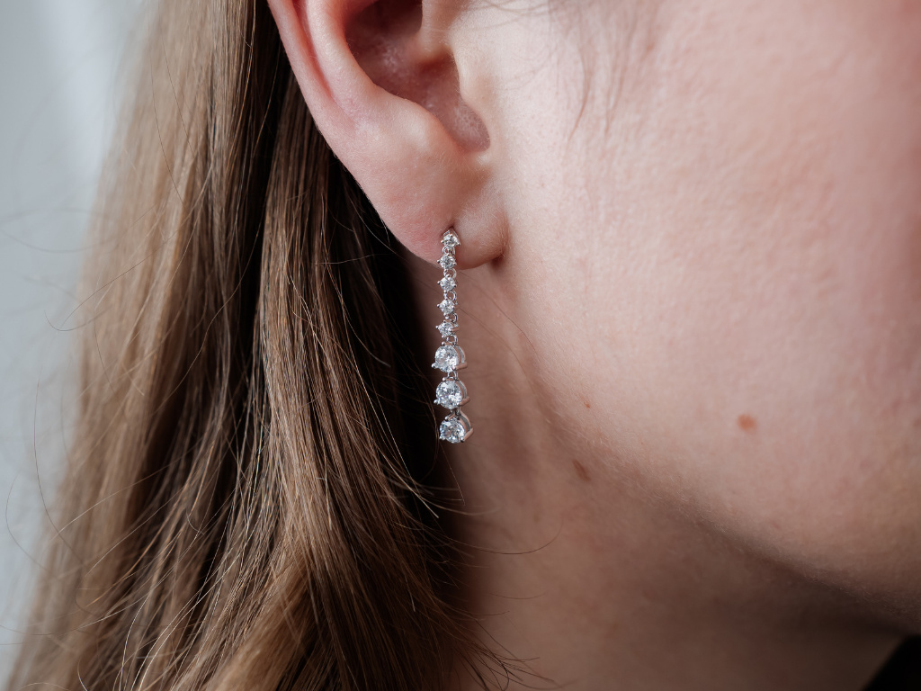 Strieborné náušnice vhodné na svadby, plesy a spoločenské akcie.