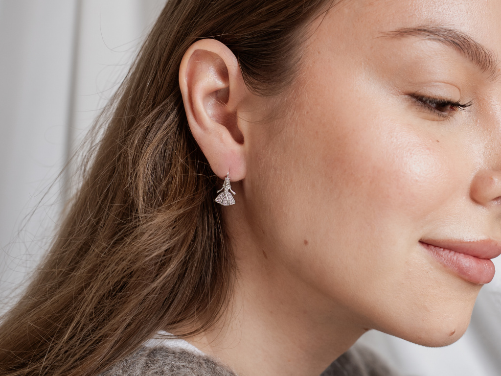 Náušnice sú vyrobené zo striebra 925/1000 a sú označené puncovou značkou rýdzosti.