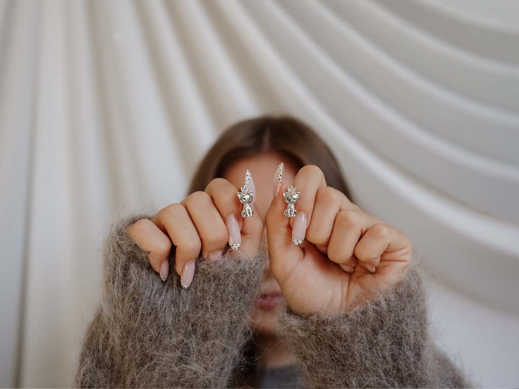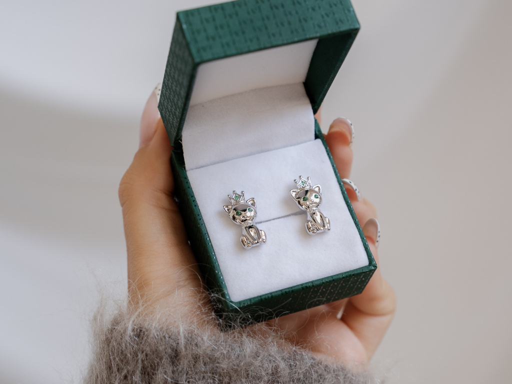 STRIEBORNÉ NÁUŠNICE MAČKA