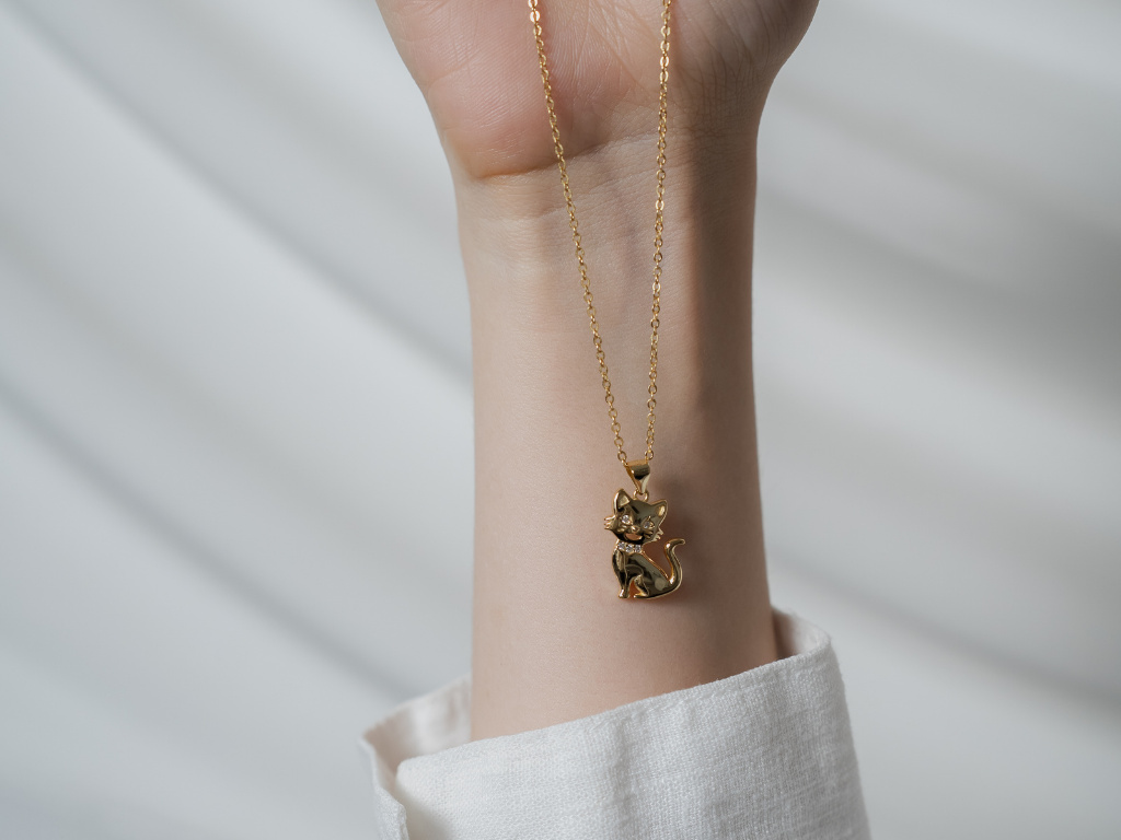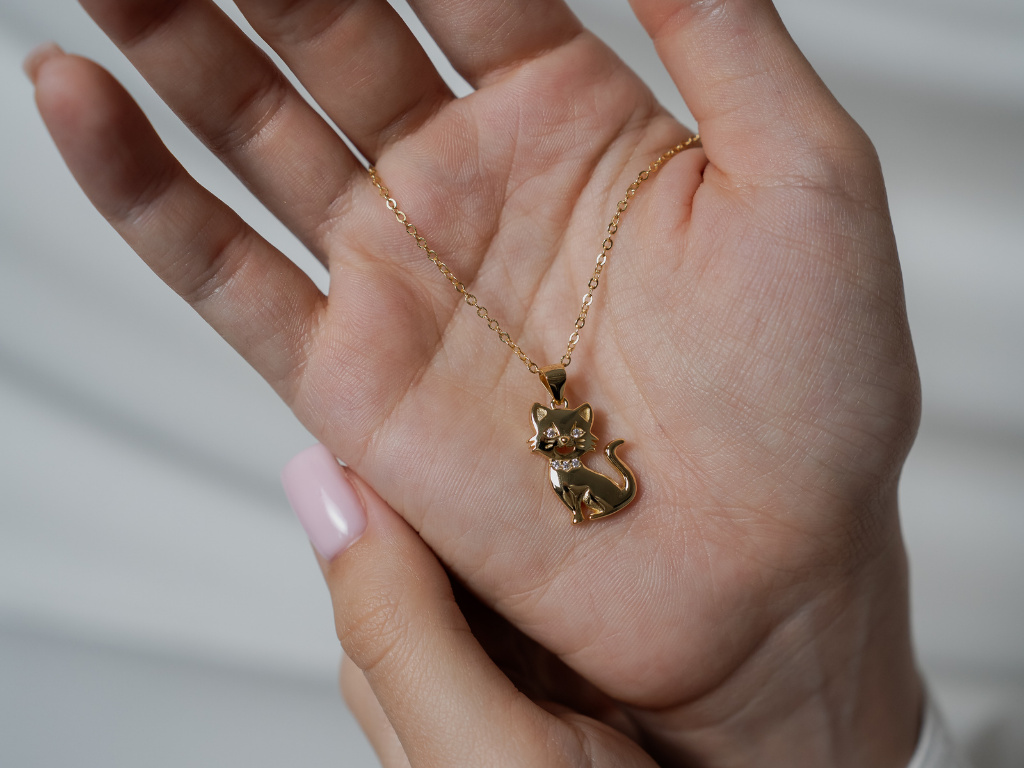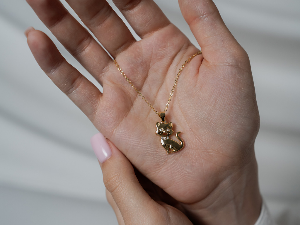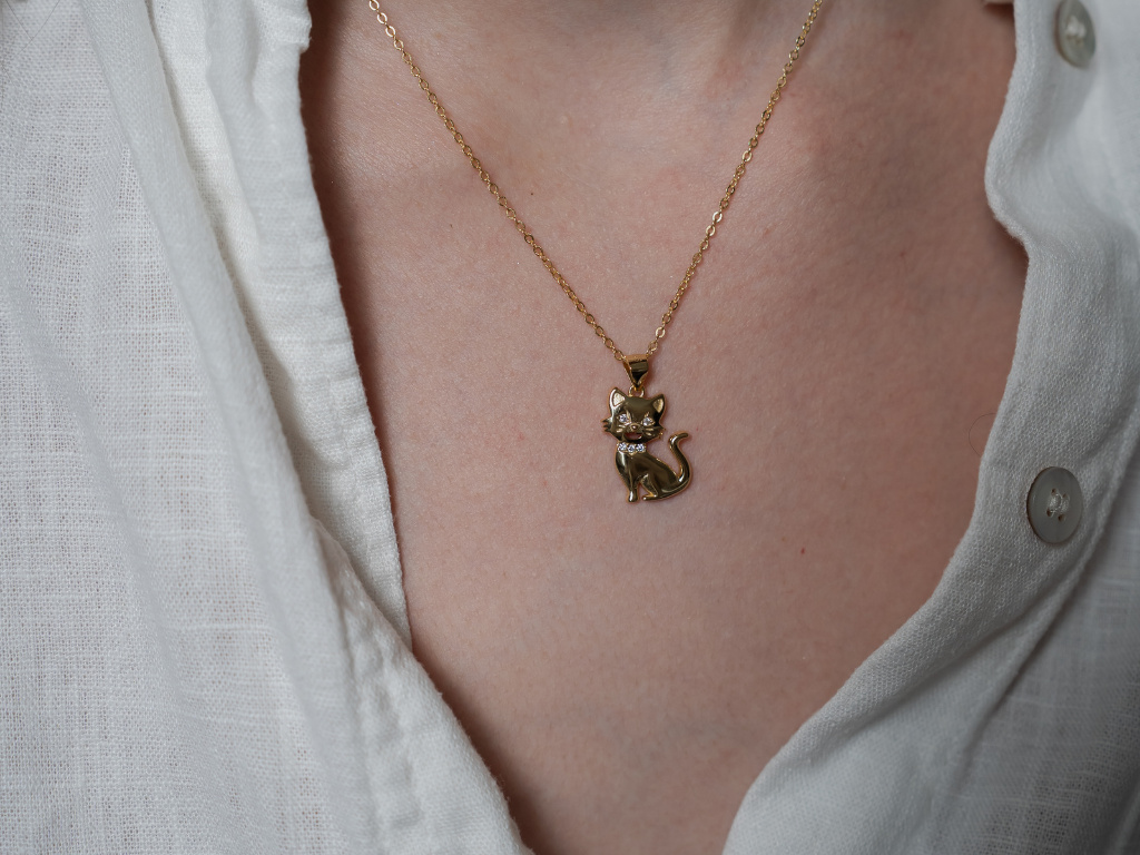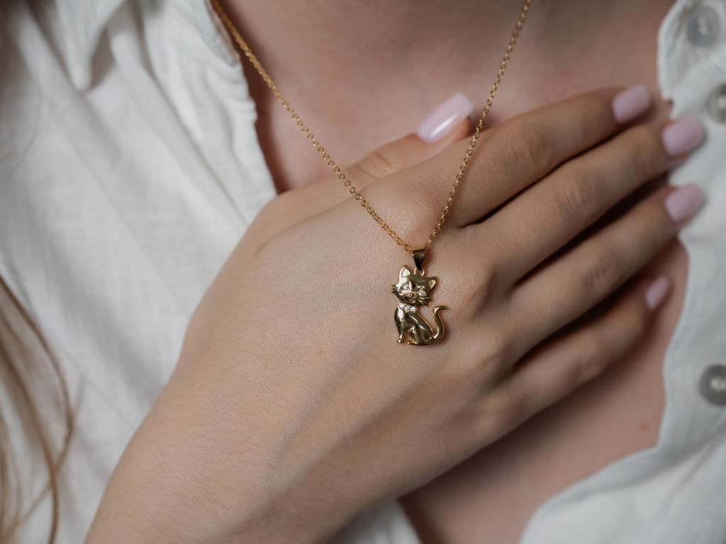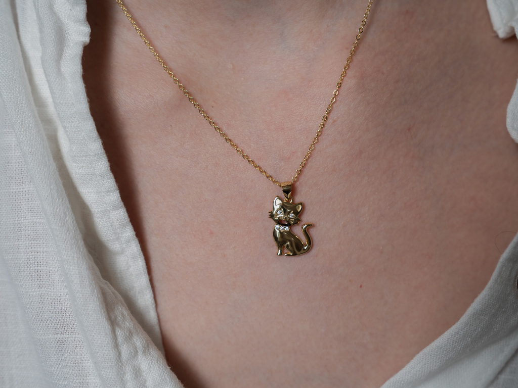 STRIEBORNÝ NÁHRDELNÍK MAČKA GOLD