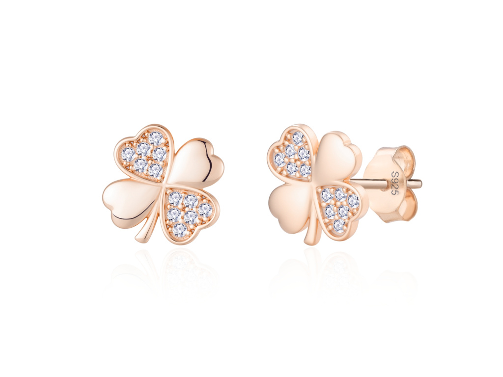9709 Strieborné náušnice ŠTVORLÍSTOK ROSE Ag 925; ≤1,7 g.