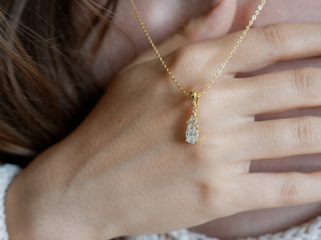 STRIEBORNÝ NÁHRDELNÍK MOISSANITE GOLD