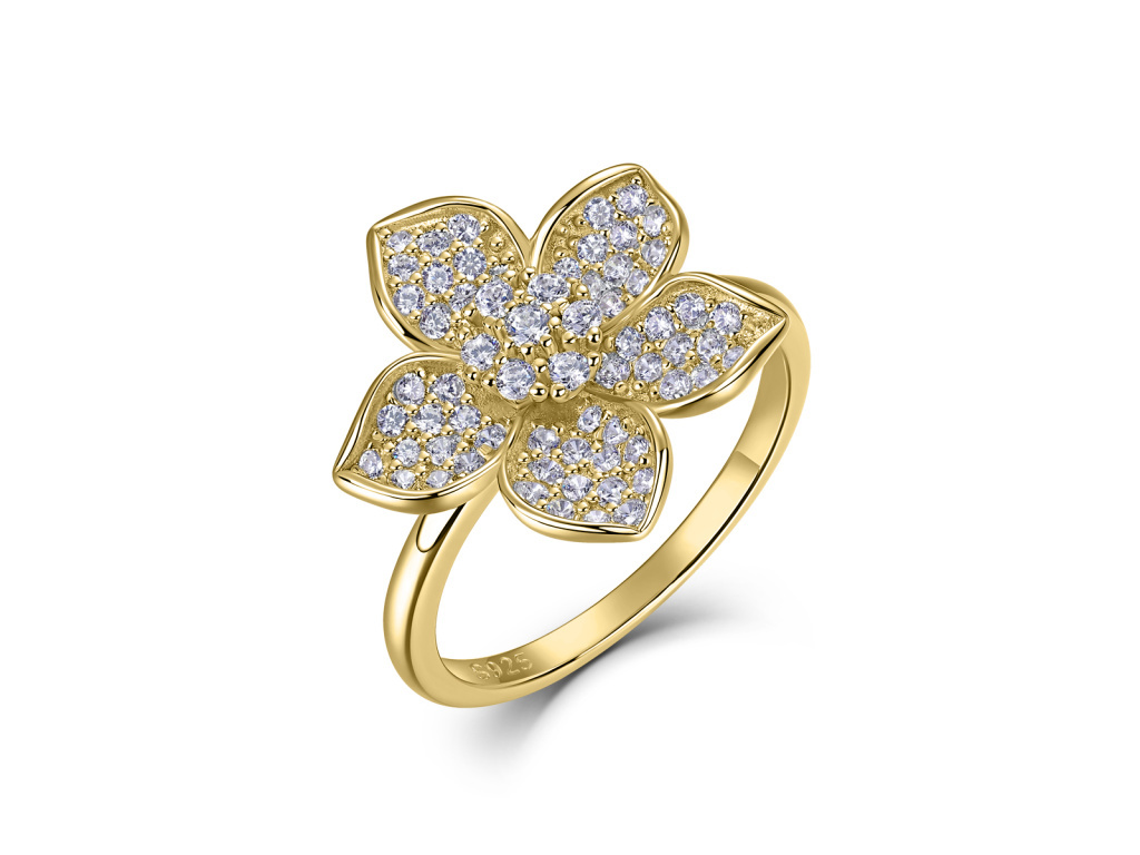 Parametre: Ag 925/1000, povrchová úprava: pozlátené; farba: zlatá; hmotnosť max. ≤4,9 g / pár; značka: OLIVIE. - Prsteň BARBORKY GOLD – jemný, ženský prsteň s kvetinovým stredom, ktorý krásne nadväzuje na náušnice.