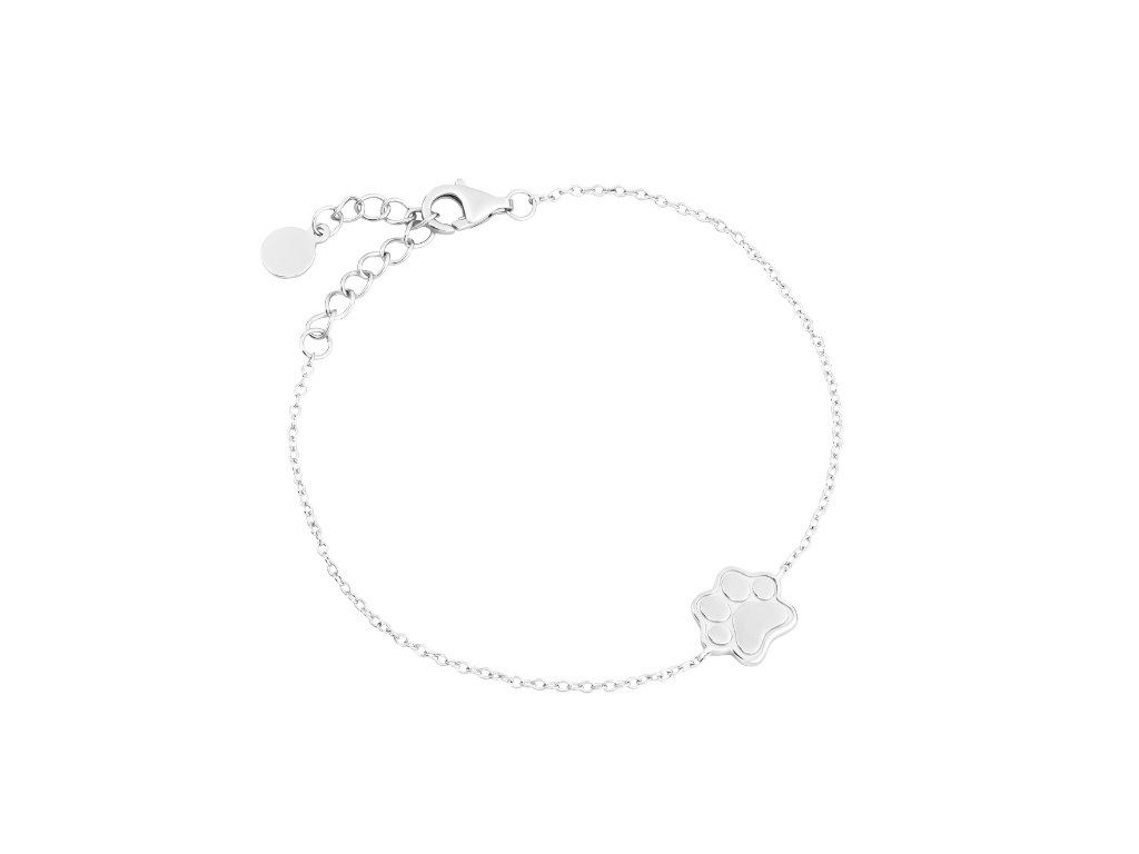 Parametre: rozmery labky cca 0,9 × 1 cm; Ag 925/1000; povrchová úprava ródium (zosilnená vrstva 0,05 μm); hmotnosť ≤1,9 g. - Strieborný náramok LABKA – decentný motív na jemnej retiazke;