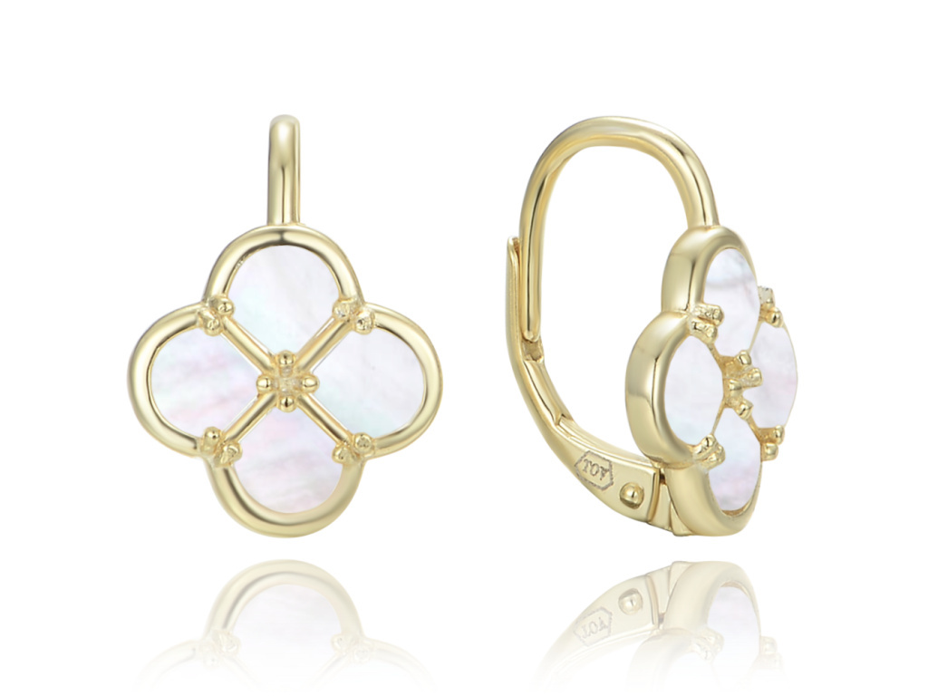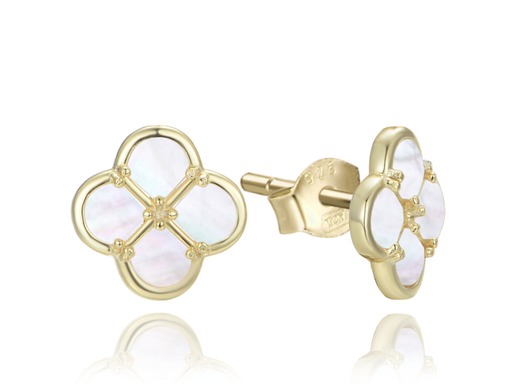 - Pozlátené strieborné náušnice TALIS (puzety) – jemné kôstky so štvorlístkom z bielej perleti, na každý deň.