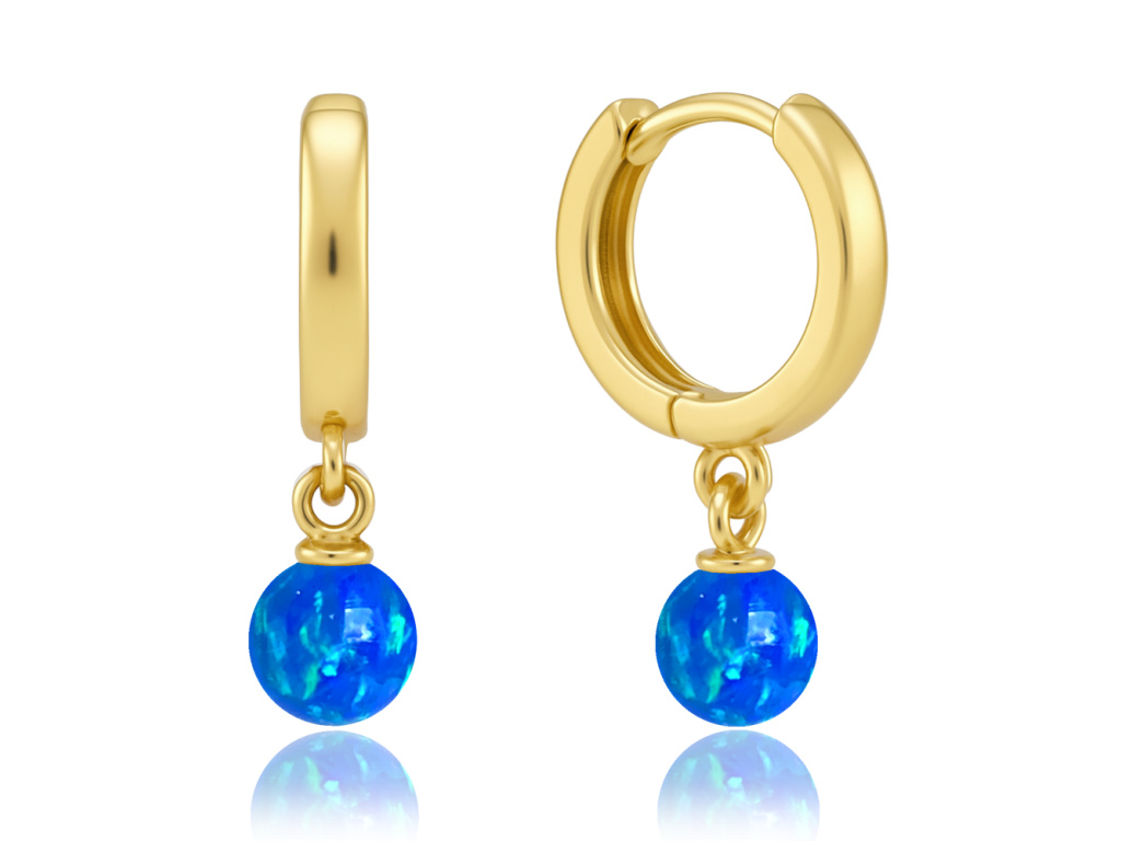 Elegantné zlaté náušnice s modrým opálom Au 585/1000
