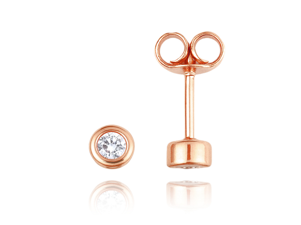 MINET Elegantní zlaté náušnice z růžového zlata s bílými zirkony Au 585/1000