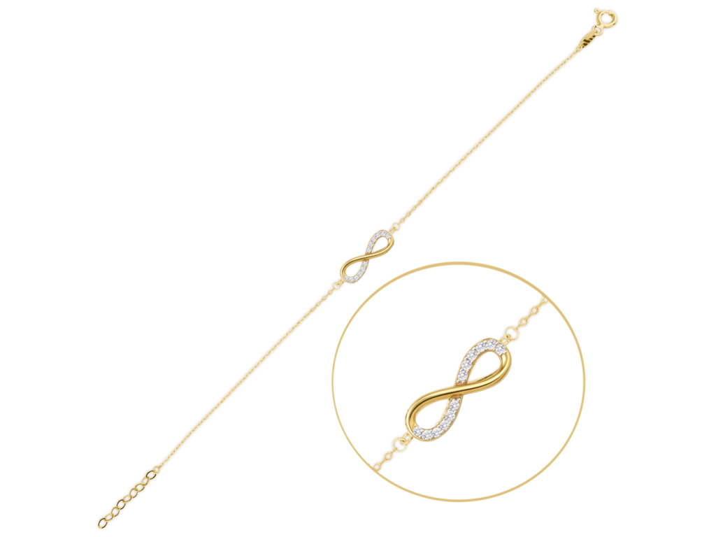 MINET Elegantní zlatý náramek nekonečno s bílými zirkony Au 585/1000