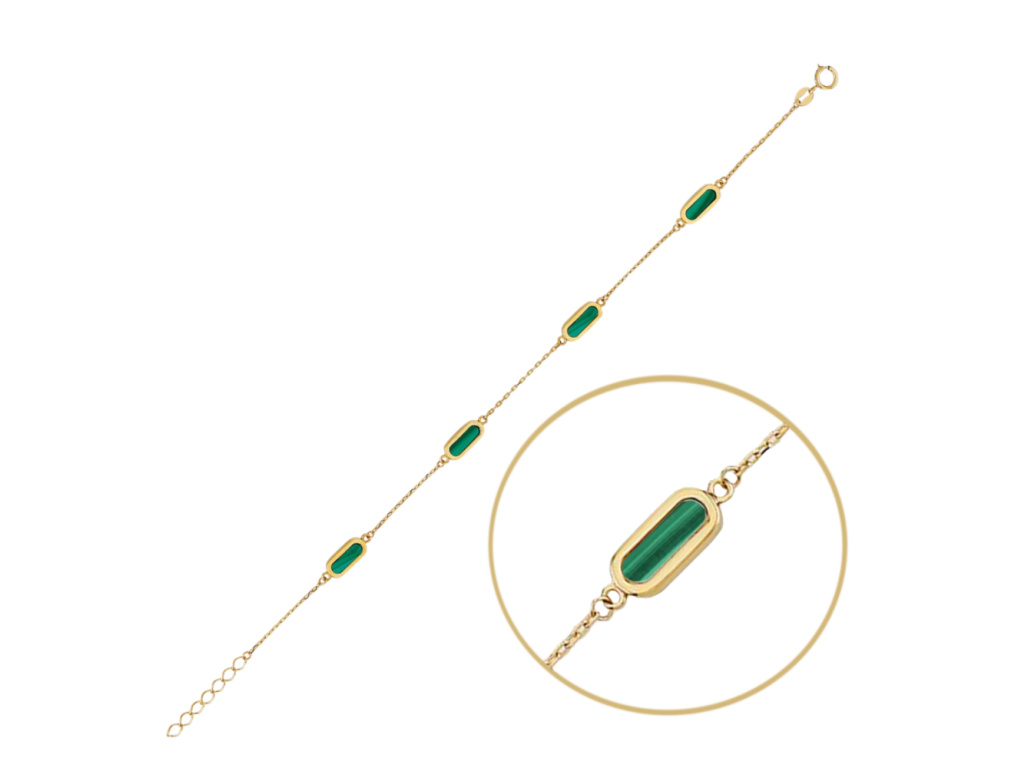 MINET Elegantný zlatý náramok so zeleným malachitom Au 585/1000