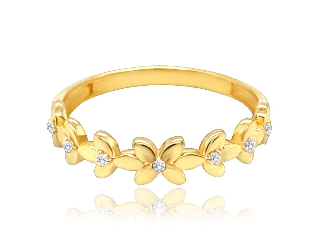 MINET Zlatý prsten kytičky s bílými zirkony Au 585/1000