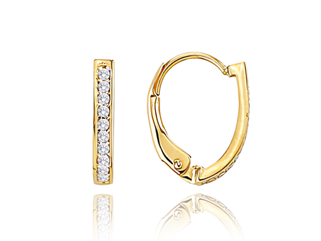 MINET Zlaté náušnice na patent s bielymi zirkónmi Au 585/1000