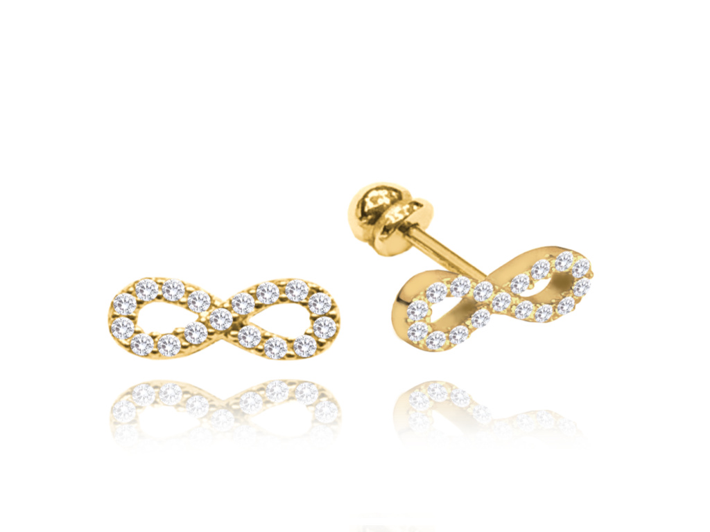 MINET Zlaté náušnice nekonečna na skrutku s bielymi zirkónmi Au 585/1000