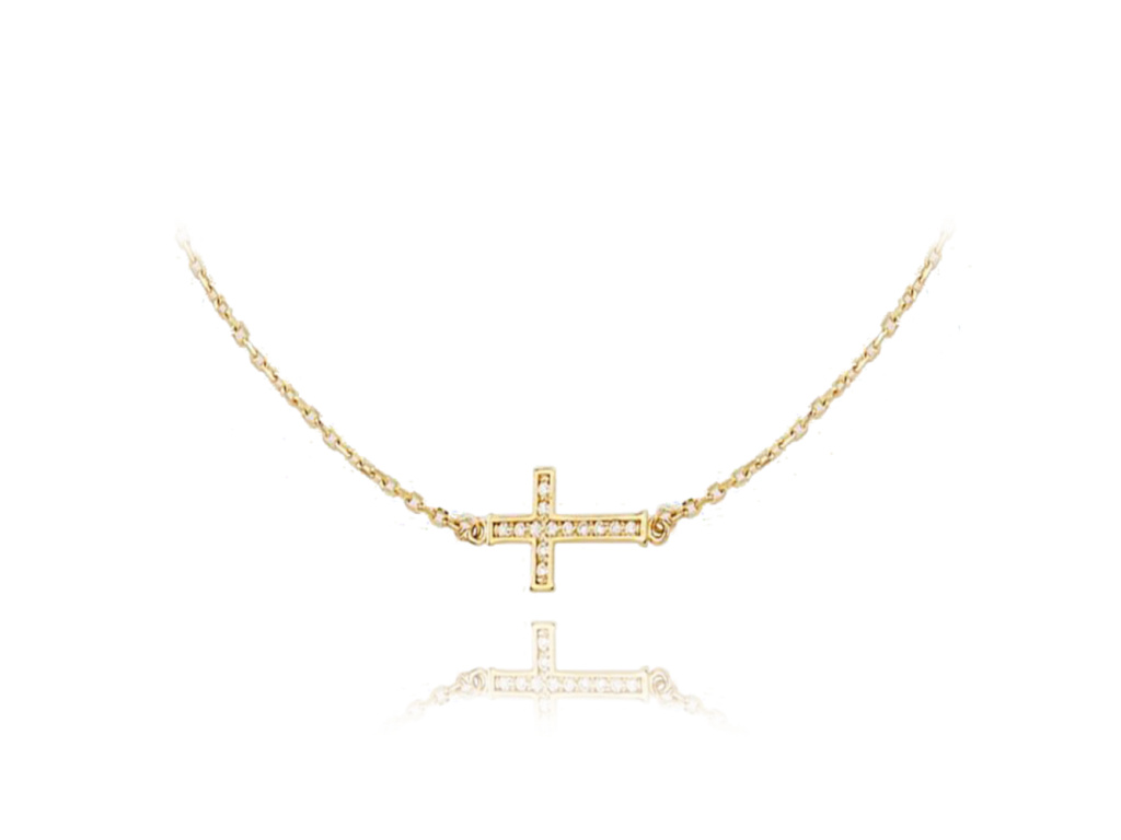 MINET Zlatý náhrdelník krížik so zirkónmi Au 585/1000