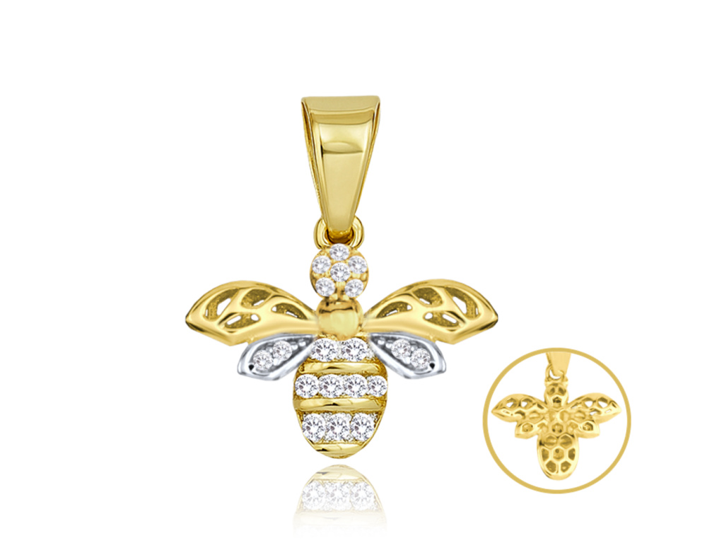 MINET Zlatý přívěs včelka s bílými zirkony Au 585/1000