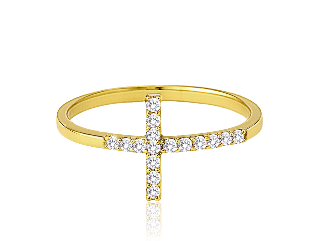 MINET Zlatý prsten křížek s bílými zirkony Au 585/1000