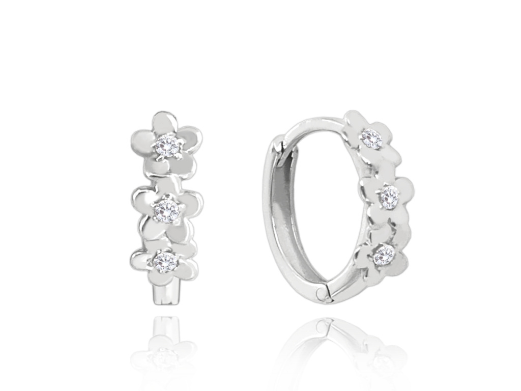MINET Náušnice z bieleho zlata kvietky s bielymi zirkónmi Au 585/1000