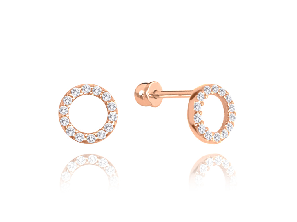 MINET Zlaté náušnice na šroubek z růžového zlata s bílými zirkony Au 585/1000