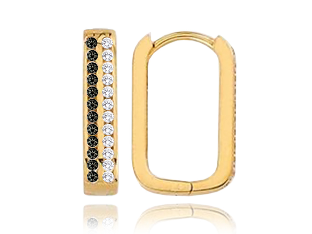 MINET Zlaté náušnice obdĺžniky s čiernymi a bielymi zirkónmi Au 585/1000