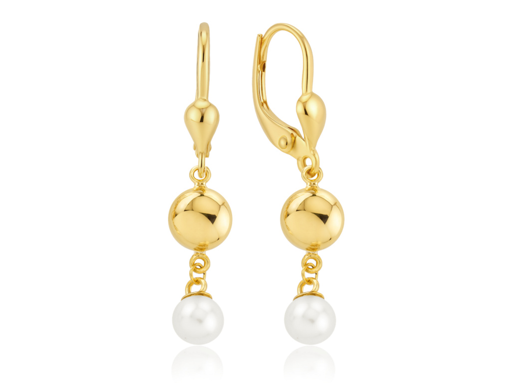 Zlaté náušnice s kuličkami a perlami Au 585/1000
