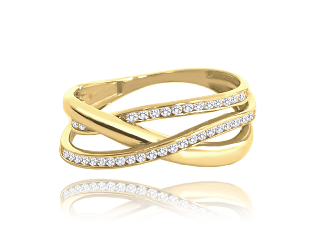 MINET Zlatý zapletený prsteň s bielymi zirkónmi Au 585/1000